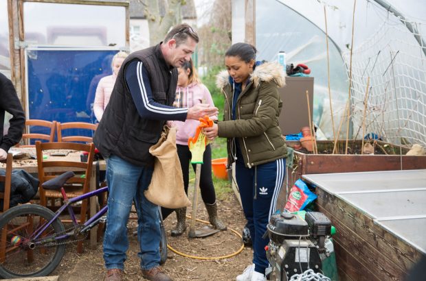 We had the group of young people from Betaris again helping out at our allotment at St James City Farm. It was a really productive morning – most of the time was spent digging the foundations of our new wheelchair friendly raised bed – a job that has been in the planning for ages, we’ve just been waiting for the muscle to get it started. So that’s been a huge help to us. The group also were involved in some seeding and planting, and most exciting of all, getting a fire going to get rid of our waste wood.