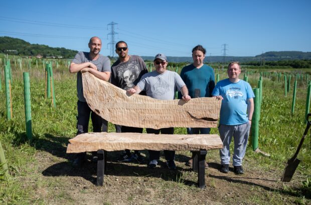 After the bench was finished it was placed at Horsbere Brook – the site of a new 4,652 tree Queen’s Jubilee Canopy Woodland.