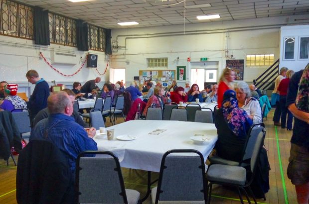 A wonderful spread of food including chicken and stuffing sandwiches, lentil curry and rice, and mushroom soup was provided by Rabia who had recently moved into the café at the front of Chequers. Chris and Lucia spent the morning in the kitchen hastily making a mountain of sandwiches as well, with Sue providing a vegetarian option as well. A selection of sweet treats including brownies and a christmas log were also available.