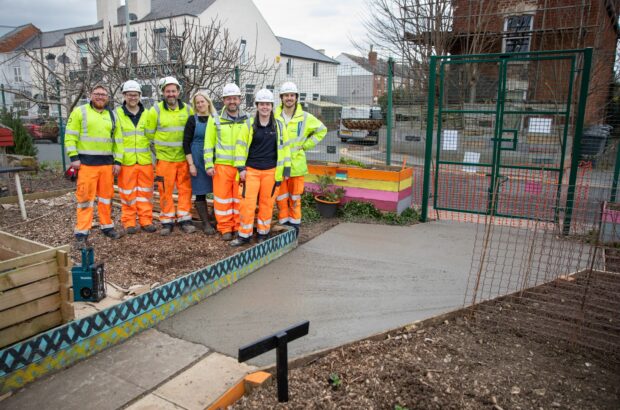 Ringway, the people in charge of Gloucestershire’s highways maintenance, spent a day at our allotment. Adam, Nick, Philippa, Alex and the rest of the team put in a new entrance to our allotment. There’s now a slope, meaning those who have difficulty with mobility find it easier to come in. They worked really hard and managed to get all the work done in one day, which was amazing.