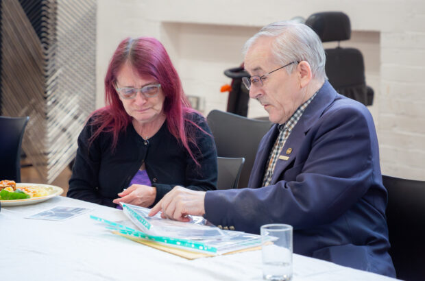 Mike, one of our lunch club regulars, is keen on geneaology. He put on the board that he was happy to help with piecing together people’s family histories. Nicki, who also comes to lunch and our wood workshop, took him up on his offer. After a couple of weeks he came to one of our Monday lunches with all he’d discovered. Nicki was incredibly moved, as you can see, and Mike was happy also to be able to share one of his interests.