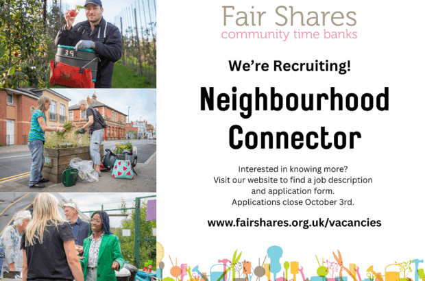 We have an exciting new job vacancy right now in Fair Shares for a neighbourhood connector working alongside the family hubs in the Barton and Tredworth area of Gloucester. We’re looking for an exciting, friendly and creative person who understands the power of community and bringing people together, and can recognise the skills and talents in our neighbourhoods that are ready to be unleashed.