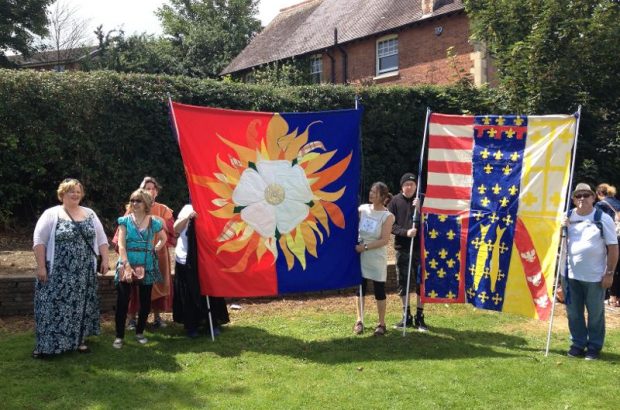 Some of Tewkesbury Fair Shares Craft Group participants got involved making these two large banners for the Medieval Festival Parade – and then carried them through the town as part of the Parade. We all had a great day out at the Festival and plan to do more things for next year!